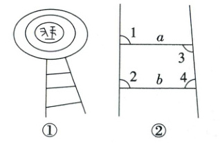 10. 在后稷故里稷山县,有个流传三千多年的独特年俗,就是除夕日农民在自家院子地面上绘“麦囤”图案,以期风调雨顺,四时平安,五谷丰登. 如图①是“麦囤”示意图,乐乐为了验证“麦囤”图案中的一组线段是否平行,测量了其中一些角的度数,如图②,下列能说明a//b的是( )