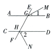 解:AB//CD. 理由:因为GM,HN分别平分∠BGE,∠DHF,所以∠BGE=2∠1,∠DHF=2∠2. 又因为∠1+∠2=90°,所以∠BGE+∠DHF=2∠1+2∠2=180°. 因为∠BGE+∠BGF=180°,所以∠BGF=∠DHF. 根据“同位角相等,两直线平行”,所以AB//CD.