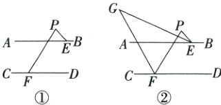 (2) 如图②,在(1)的条件下,∠AEP与∠PFC的平分线交于点G,求∠EGF的度数。