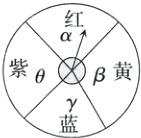 5. 如图,转盘的红、黄、蓝、紫四个扇形区域的圆心角分别记为α,β,γ,θ. 自由转动转盘,则下列说法正确的是__________.(填序号)
