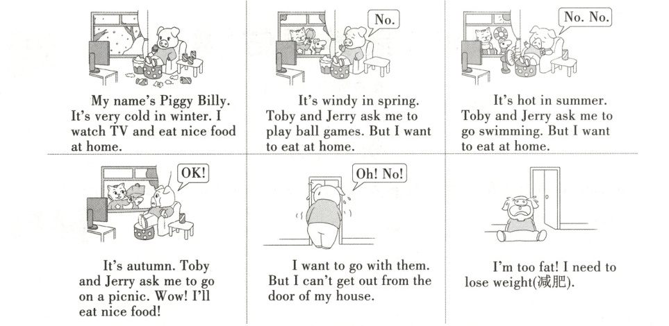 ( )5. Piggy Billy can’t go out because he is too fat.