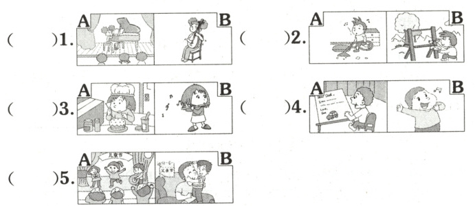 三、听五段小对话,选出与所听内容相符的图片。(10分)