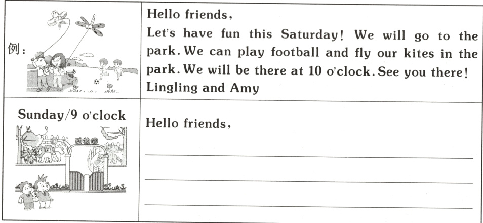 仿照范例写一写,帮 Daming和Sam完成周末活动的海报。