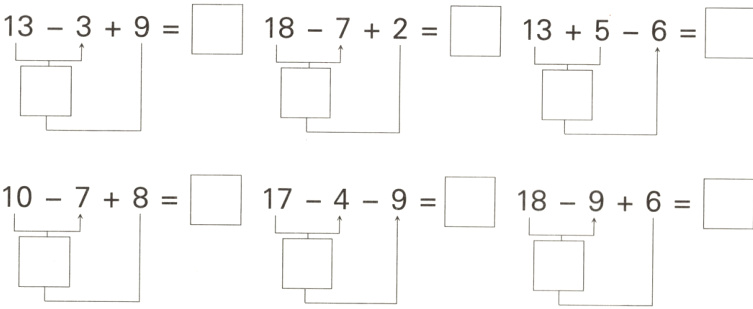 6 + 4 - 9 = 8 + 9 - 5 = 12 - 3 + 1 =