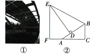15. (本题11分) 如图①是某城市广场地下停车场的入口,图②是安装雨棚左侧支架的示意图,已知支架的立柱BC与地面垂直(∠BCA = 90°),BC = 1.5 m,点F,A,C在同一水平线上,斜杆AB与水平线AC的夹角∠BAC = 30°,AD = 1 m,支撑杆DE⊥AB于点D,支架的边BE与AB的夹角∠EBD = 60°.求支架的边BE的长.