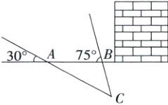 12. 文物探测队探测出某建筑物下面有地下文物,为了准确测出文物所在的具体位置,他们在文物上方建筑物的一侧地面上相距20米的A,B两处,用仪器探测文物C,探测线与地面的夹角分别为30°和75°.