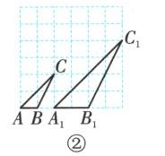 典例2(2024·绍兴期中改编)如图①,每个小正方形的边长都是1,请在网格中画出将△ABC放大后与它相似的格点三角形$A_1B_1C_1$.