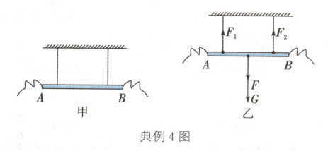 典例4 如图甲所示,用两根橡皮筋悬挂的金属棒AB处于磁场中,金属棒两端连接着导线(导线对金属棒的作用力忽略不计).当棒中通以由A流向B的电流时,金属棒静止,橡皮筋正好处于松弛状态;现让电流由B流向A,金属棒仍静止,请画出此时金属棒受力的示意图.