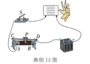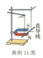 典例14 课堂上,老师做了如图所示的演示实验,给直导线(铝棒)通电,观察到直导线运动起来.