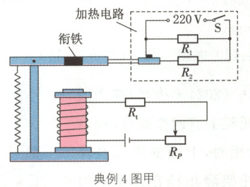 典例4 (2024·宿迁)教室的饮水机上有两条提示语:“注意水温,谨防烫伤”和“节约用电,弘扬美德”。 小明画出了饮水机电路示意图,如图甲所示,电阻R1 = 1 210Ω,加热时总功率为840 W。 线圈内阻不计,Rt为热敏电阻,其阻值随温度的变化如表所示,控制电路电源电压恒为3 V,当电流达到0.02 A时衔铁被吸合。