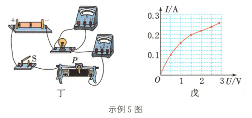 答案:(1)如图丁所示(2)滑动变阻器接人电路的是两个下接线柱(3)右0.6(4)如图戊所示(5)小灯泡两端的实际电压越高,小灯泡的电功率越大,小灯泡越亮(或小灯泡的亮度由它的实际电功率决定等答案合理均可