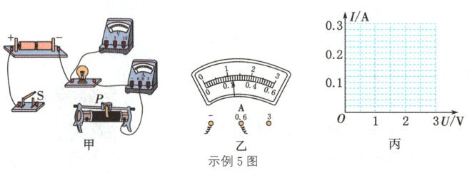 示例5 (山西中考)小明同学在“测量小灯泡的电功率”的实验中,小灯泡的额定电压为2.5 V,电源为两节新干电池,滑动变阻器标有“20 Ω 1 A”字样。