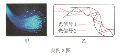 解析:(1) 光纤是光导纤维的简称,它的直径与头发丝相当,它由折射本领不同的玻璃制成内、外两层,光纤内的光线在内、外两层交界处发生全反射. 光纤的主要用途是传输信息,即通信. 光纤的材料主要是玻璃,它不导电也不易导热,也不会发光照明. 故选B.