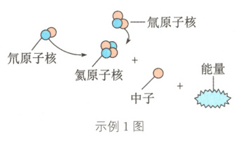 示例1 (2024·陕西)原子由原子核和______________构成. 原子核发生变化时,释放出的能量被称为核能,核能属于______________(可再生/不可再生)能源. 我国自主设计、建造的“东方超环”核反应装置用于研究如图所示的核反应,这种反应叫作核________(裂/聚)变.