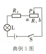 典例5(济宁中考)如图所示,电源电压保持不变,滑动变阻器R₁的最大阻值为20Ω,小灯泡的电阻Rₗ = 8Ω,R₂<Rₗ,闭合开关S,当滑片P置于b端时,小灯泡的实际功率为2W,忽略温度对小灯泡电阻的影响,则滑片P置于a端时,小灯泡的实际功率可能是( )