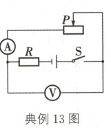 典例13(连云港中考)如图所示,电源电压恒为15 V,定值电阻R的阻值为20 Ω,闭合开关后,使变阻器的阻值减小5 Ω,电流表示数变化了0.1 A,则下列说法正确的是( )
