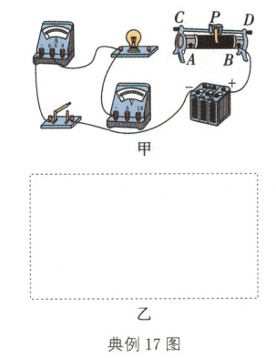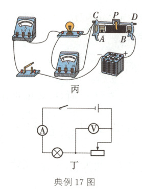 典例17 在“测量灯泡的额定功率”的实验中,如图甲所示。其中被测灯泡的额定电压为3.6 V,它的额定功率在0.8 W左右,电源电压恒为6 V,电流表量程有0~0.6 A和0~3 A,电压表量程有0~3 V和0~15 V。