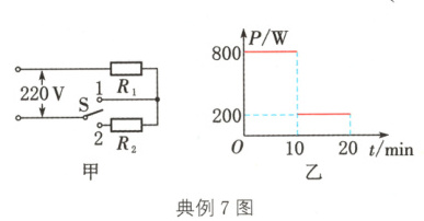 典例7(常德中考)某型号电饭煲有加热和保温功能,如图甲所示为其内部电路原理图,图乙是该电饭煲工作时电功率与时间的关系图像,关于电饭煲工作时,下列说法正确的是( )