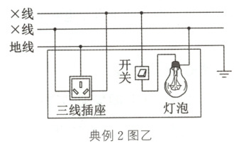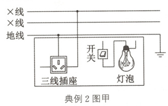 典例2(镇江中考)图甲中,插座的一部分已正确接入家庭电路,请将其他部分也正确接入家庭电路.
