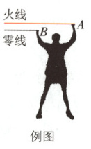 误区分析 错选A的原因是对人体触电的实质理解不透. 触电的实质是一定强度的电流通过人体对人体造成伤害. 在本题人、灯交替的过程中,若助手未将零线断开,则表演者一定会触电,这属于双线触电. 而将零线断开,火线、表演者与大地之间无法构成回路,也就没有电流通过表演者,表演者当然不会触电. 由于表演者与火线相连,所以助手用测电笔分别测试A、B及表演者的皮肤,测电笔的氖管都会发光.