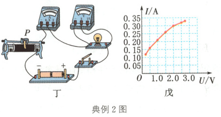 答案:(1)如图丁所示 (2)2.7 滑动变阻器连入电路中的阻值较小 (3)0.8 (4)如图戊所示 0.31 (5)电源电压小于2.5 V(或滑动变阻器的最大阻值较小)