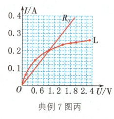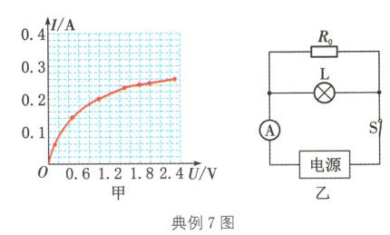 典例7(2024·南通)图甲是灯泡L的I - U图像,灯泡的额定电压为2.5 V.将灯泡L接入图乙电路,已知电阻R0的阻值为5 Ω,电流表量程为0~0.6 A,电源电压可调.在电路安全工作的前提下,下列判断正确的是(提示:可在图甲中作出电阻R0的I - U图像)( )