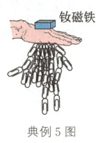 典例5 如今,说我们的生活是由磁铁支撑着并不为过. 史上最强力的钕磁铁广泛用于手机、电脑、冰箱等. 如图所示为小明同学用钕磁铁和曲别针进行的实验. 通过实验情景,可以判定下列说法正确的是( )