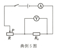 典例5(扬州中考)如图所示,电源电压为6 V,电阻$R_{0}=10\ \Omega$,电流表量程为0~0.6 A,电压表量程为0~3 V,滑动变阻器R上标有“20 Ω 0.5 A”字样.求: