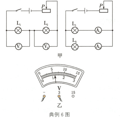 典例6(2023·徐州)如图甲所示,小明在做“比较两个灯泡的亮暗”的实验时,将L₁、L₂两个阻值不等的白炽灯泡,分别串联、并联在电路中.