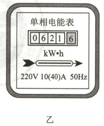 D.乙图中,电能表所在电路的总功率不能超过2200W