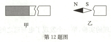 12.如图甲所示,一个条形磁铁摔成两段,取右边的一段靠近小磁针,小磁针静止时的指向如图乙所示,则右边这处裂纹的磁极是________极.如果把这段磁铁沿裂纹吻合放在一起,这两段会相互________(选填“吸引"或“排斥”).