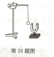 16. 如图所示,将竖直悬挂的乒乓球接触正在发声的音叉,会看到乒乓球______________. 该实验说明声音是由物体的振动产生的. 请你再设计一个能显示声源振动的实验:______________________________ .