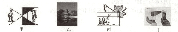 D.图丁:用手机扫二维码付款时,二维码要位于手机摄像头的一倍焦距到二倍焦距之间