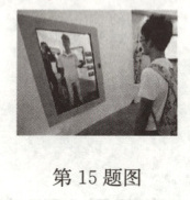15.“虚拟试衣镜”亮相南京国际软件产品博览会,该款“虚拟试衣镜”解决了购物者很难观察到试穿衣服时背面的情况,摄像头能够监视顾客的移动,并将衣服的背面展现给他们,如图所示.监视顾客移动的摄像头相当于一个凸透镜,顾客离摄像头的距离应在_______的范围,能形成_______(选填“倒立”或“正立”)的实像.