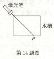 14.(2024·江苏无锡校级三模)如图为“初识光的折射现象”的活动,在半透明水槽中放蚊香产生烟雾,打开激光笔,根据_______(选填“镜面”或“漫”)反射的原理,可观察到笔直光路,“笔直”说明_______,在水槽内壁的光斑P点处做上标记,向水槽内慢慢注水,水槽底部光斑将_______(选填“向左移动”“向右移动”或“不动”).