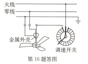 16.(2024·广东阳江模拟)把图中吊扇按安全用电原则接入电路,要求:调速开关控制吊扇的转速,当调速开关滑片顺时针转动时,吊扇风速变快.