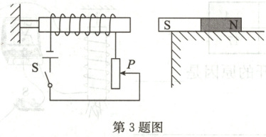 3. (改编题)如图所示,条形磁铁置于水平桌面上,电磁铁与条形磁铁处于同一水平线放置,且左端固定,当开关S闭合,电路中滑动变阻器的滑片P逐渐向下移动时,条形磁铁始终保持静止,则在此过程中,条形磁铁受到的摩擦力( )