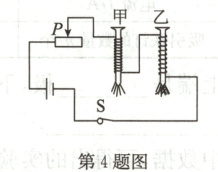4. (2024·安徽阜阳一模)在探究“影响电磁铁磁性强弱的因素”实验中,小明用铁钉制成简易电磁铁甲、乙,并设计了如图所示的电路. 闭合开关S,下列分析判断正确的是( )
