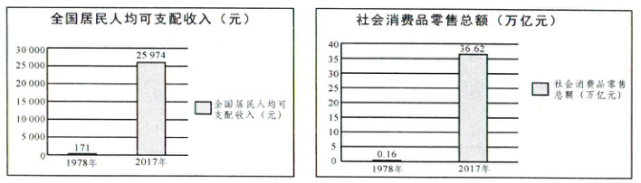 (2)变化:①我国居民人均可支配收入不断增加;②消费总量不断增加。(每点1分,共2分)原因:改革开放以来,我国的经济飞速增长,人民的生活水平不断提高。(2分)