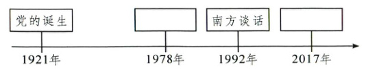 1.【时空观念】(吕梁市期中)绘制年代尺是梳理史实的重要方法之一。下面的历史年代尺展示了中国共产党带领中国人民近百年的奋斗历程,其中与1978年对应的方框内应该填写 ( )