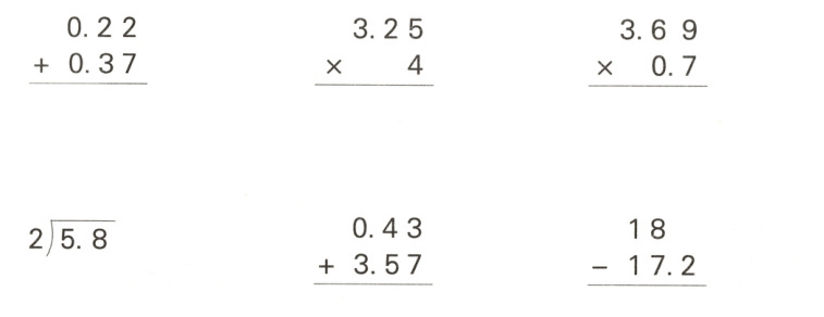 54÷0.9= 3.5×0.4= 6.4÷4=