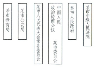 B 【解析】本题考查国家机关。依据教材知识分析材料可知,A错误,政协不是国家机构,人民法院行使审判权;B正确,教育局、公安局属于政府部门,都属于行政机关;C错误,市人大是该市最高权力机关;D错误,市政协不能开展执法检查。故本题选B。