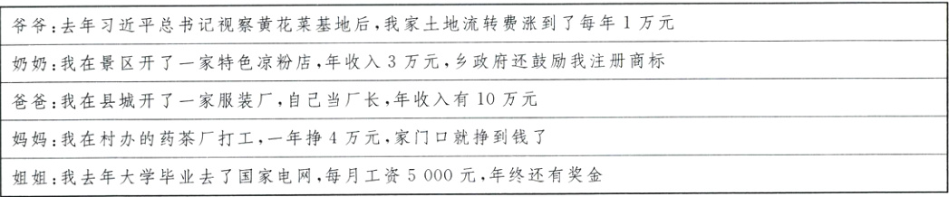下列选项中对于小莉一家的“经济密码”解读正确的是 ( )