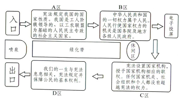 八年级(3)班的同学完成了“坚持宪法至上”主题长廊设计(如下图所示),并准备按照图示内容完成相应展区的布置。
