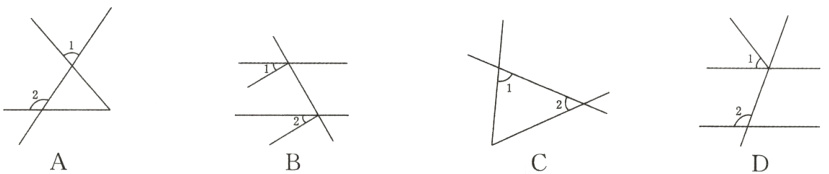 1. 下列图形中,∠1和∠2为同位角的是 ( )