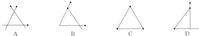 1. 下列是小强用三根火柴棒组成的图形,其中,符合三角形概念的是 ( )