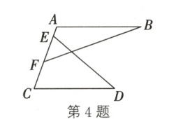 4. ★(娄底中考)如图,AB//CD,点E,F在边AC上,∠CED = 70°,∠BFC = 130°,则∠B + ∠D的度数为 ( )
