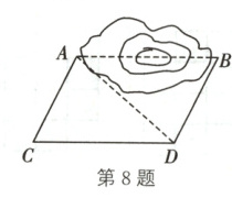 8. (18分)如图,A,B两点之间被一个池塘隔开,无法直接测量AB的长. 小明设计了如下方案:在池塘同侧取C,D两点,使得AC//BD,且AC = BD,连接CD,量出CD的长即为AB的长. 你认为小明的设计方案可行吗?若可行,请说明CD = AB;若不可行,请说明理由.