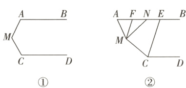 $(2)$如图$②,$$MN $平分$∠AMC $交$ AB $于点$ N,$$CE $平分$∠MCD $交$ AB $于点$ E,$$MF//CE $交$ AB $于点$ F,$试猜想$∠FMN $与$∠BAM $的数量关系,并说明理由$.$