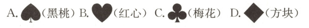 $3.($河北中考$)$有$7$张扑克牌如图所示$,$将其打乱顺序后,背面朝上放在桌面上$,$若从中随机抽取一张,则抽到的花色可能性最大的是$( )$